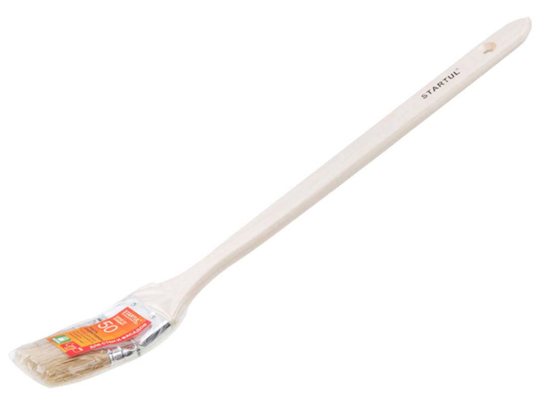Кисть радиаторная для выполнения различных внутренних и внешних малярных работ в труднодоступных местах. Используется со всеми типами лакокрасочных материалов (ЛКМ), применяются преимущественно при окрашивании лакокрасочными материалами на масляной основе и густыми лаками, олифой и эмалями. 100% натуральная светлая щетина. Устойчива к сильным растворителям, обладает хорошей краскоотдачей, равномерное распределение краски по окрашиваемой поверхности. Имеет определенные ограничения при применении ЛКМ на водной основе, так как натуральная щетина впитывает в себя воду.