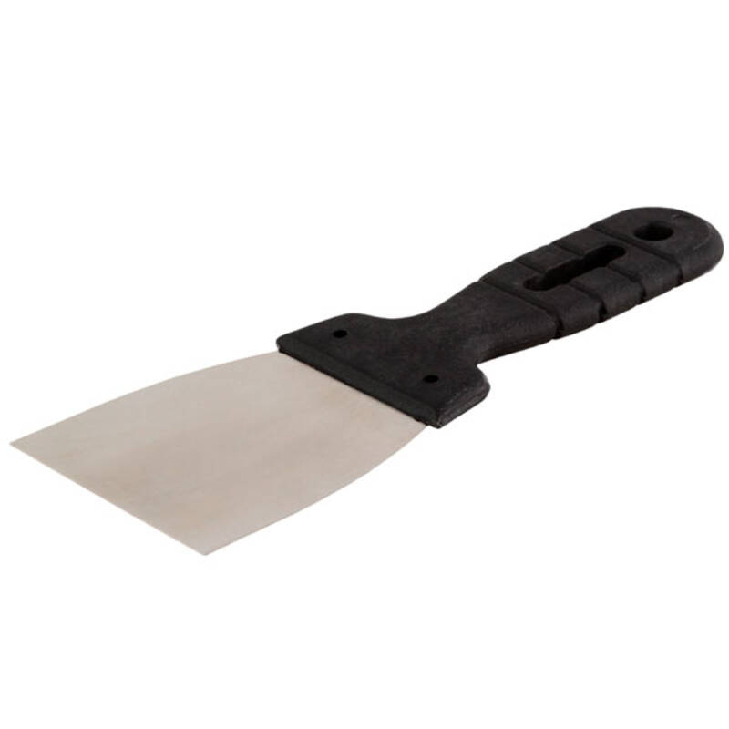 Шпатель предназначен для нанесения, разравнивания и сглаживания шпаклевочного слоя на поверхности. Полотно характеризуется жесткостью и прочностью. Инструмент оснащен облегченной ручкой из ударопрочной пластмассы. Широко используется в строительстве, в штукатурно-малярных работах. Преимущества: эргономичная ручка; длительный срок службы; устойчивость к агрессивным средам; доступная цена; антикоррозийное покрытие.