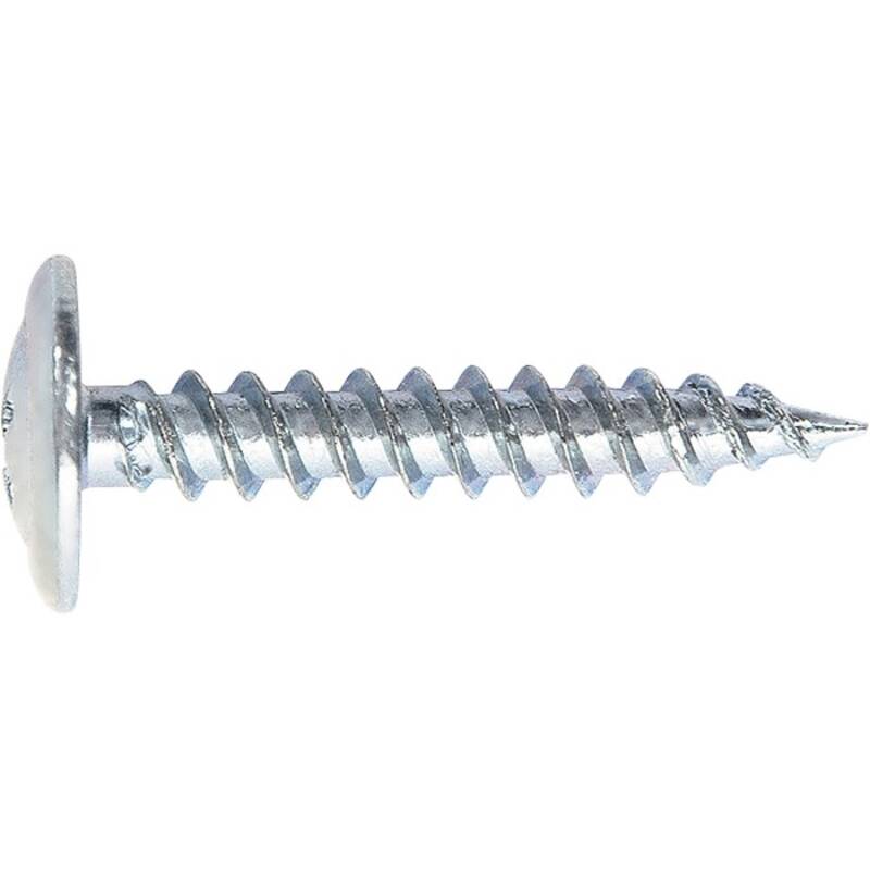 Головка полусферическая с пресс-шайбой, шлиц No2, частая резьба, белый цинк. Наконечник может быть острым (для деревянных поверхностей) или сверловидным (для металлических поверхностей). За счет прессшайбы осуществляется эффективное прижимание листовых материалов.