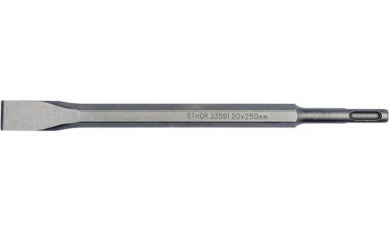 Плоское узкое зубило SDS-plus имеет наконечник в форме лопатки и применяется для снятия старой плитки, на работах по штроблению стен, разрушению асфальтового или бетонного покрытия.